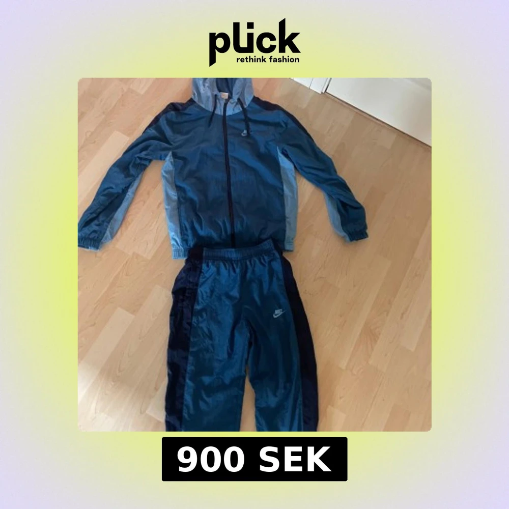 Nike träningsbyxor i olika blå nyanser med elastisk midja och vita Nike-loggan på låret. Byxorna har svarta och ljusblå paneler längs sidorna och är gjorda i ett lätt, syntetiskt material som passar perfekt för sport eller chill. Snygg och sportig look. Storlek xs men sitter som S