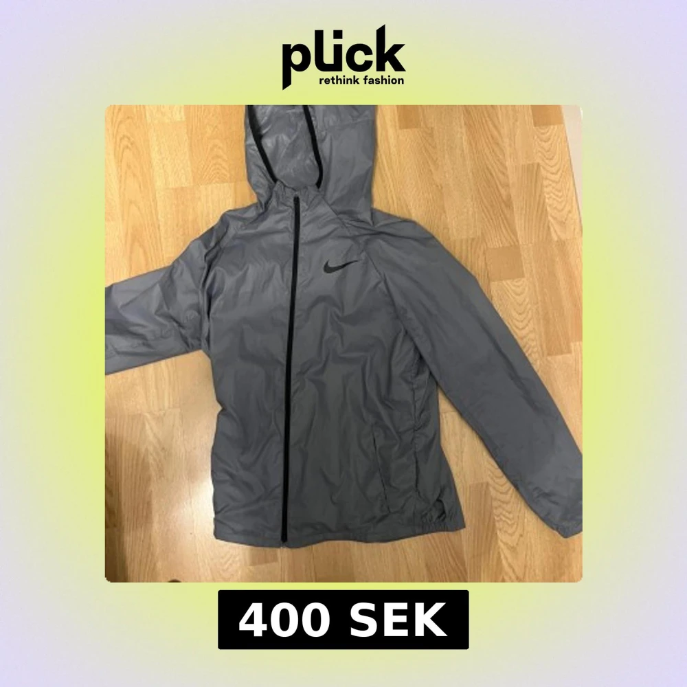 Säljer en stilren grå vindjacka från Nike med huva och dragkedja. Jackan har en normal passform och är perfekt för blåsiga dagar. Den ikoniska Nike-loggan syns på bröstet. Passar bra till både jeans och träningskläder. Detta är barnstorlek XL (158-170)