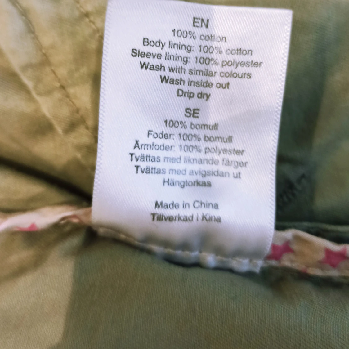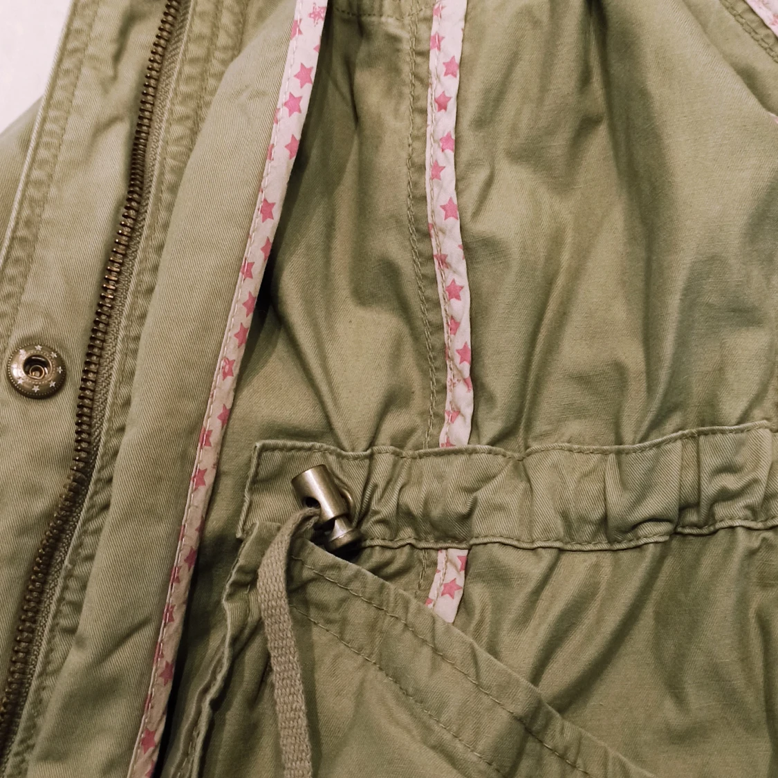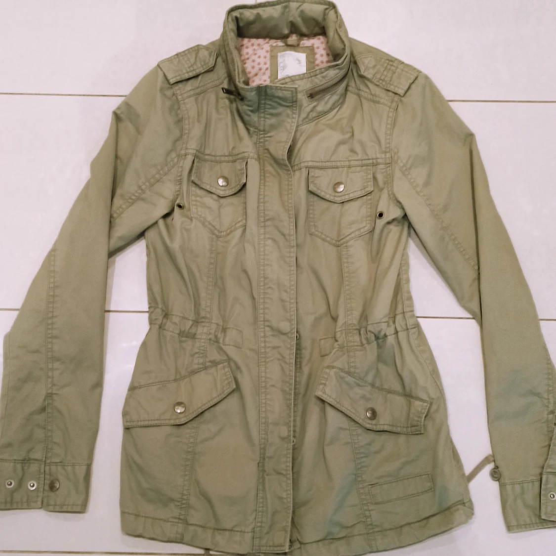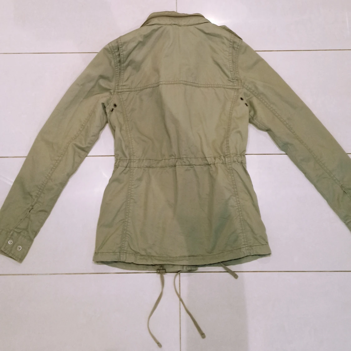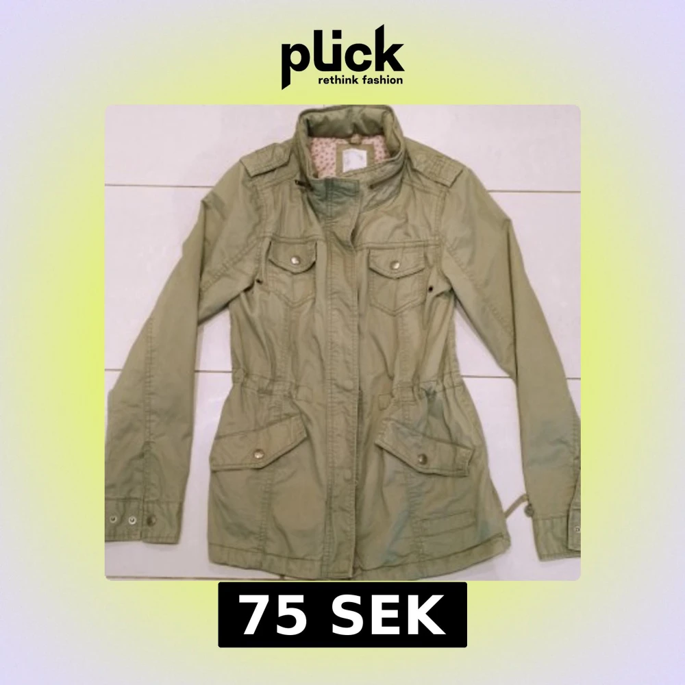 En olivgrön höstjacka från MQ, storlek XS💕 sann i storlek. Har en massa coola detaljer såsom störning i midjan så att den går att göra tightare eller en ficka vid nacken vars man kan ta fram en luva⭐ Jackan har använts sparsamt och har inga hål eller liknande!
