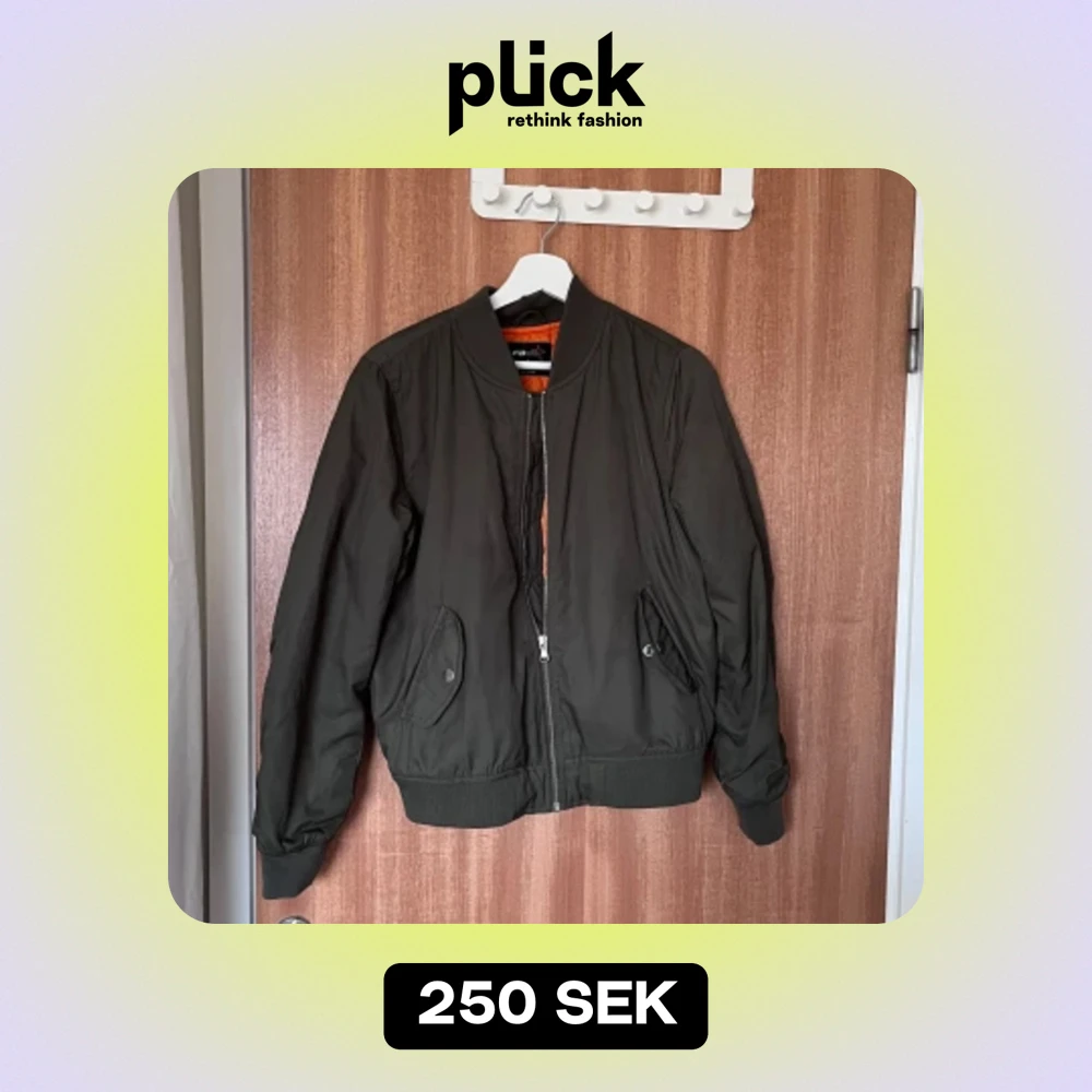 Säljer en snygg olivgrön bomberjacka från FB Sister i storlek L. Jackan har en cool orange insida och stängs med dragkedja. Den har långa ärmar och muddar vid ärmslut och nederkant. Perfekt för höst och vår!