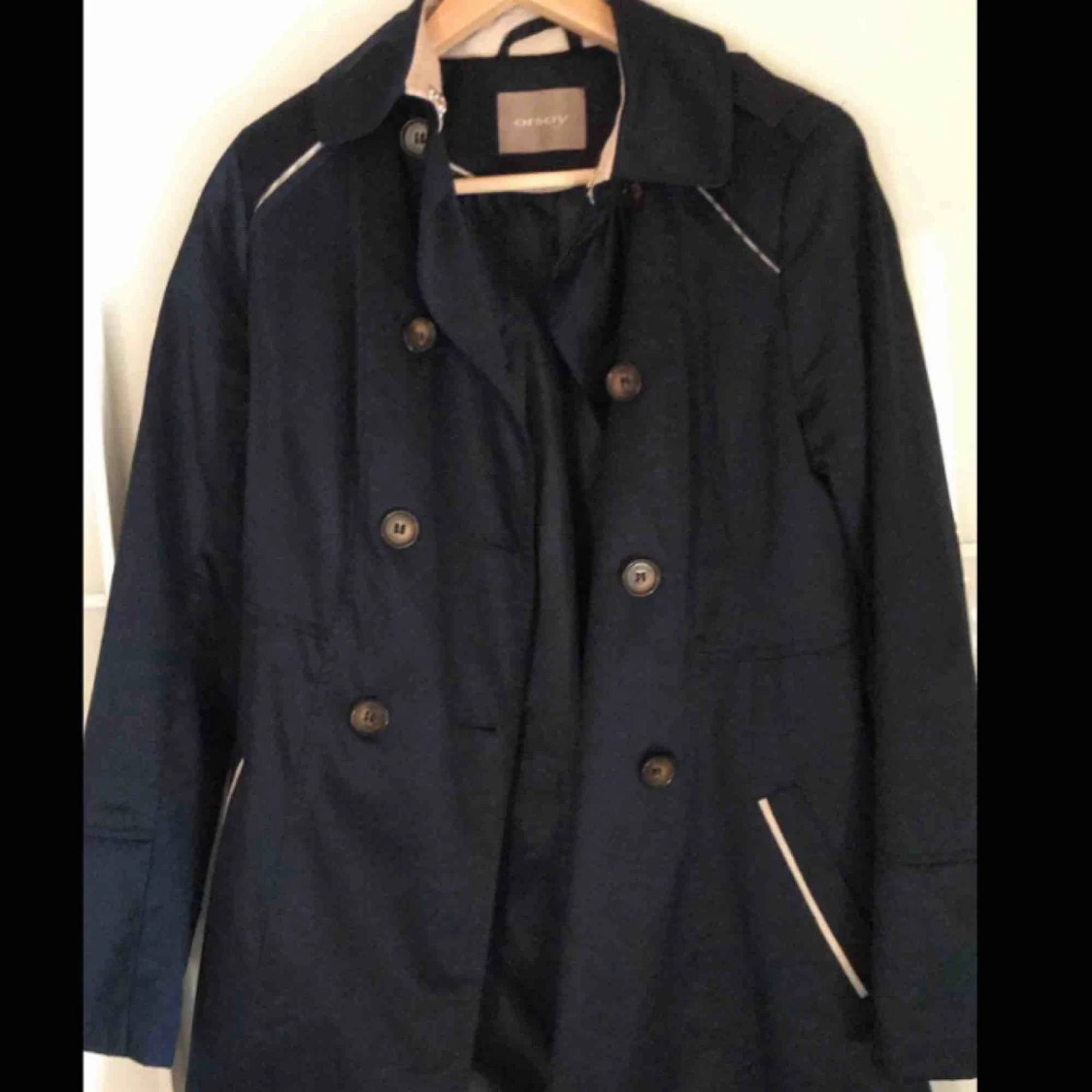 Aldrig använt. Märke Orsay storlek 36. Marinblå kappa.