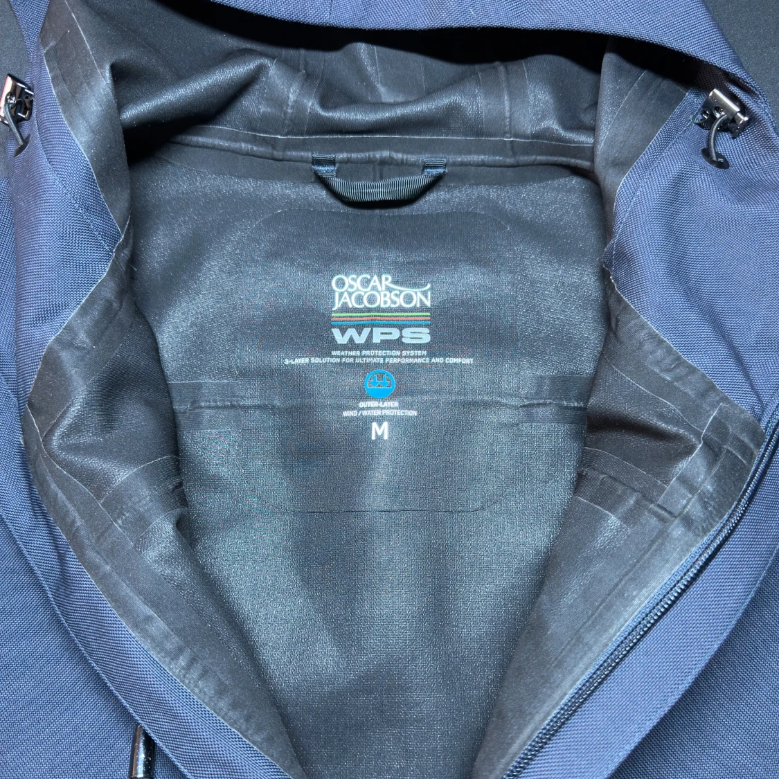 Säljer en stilren blå vindjacka från Oscar Jacobson. Jackan är perfekt för våren, sommaren och hösten när de är lite blåsigare samt regnigare dagar. Skick, 9/10 inte använd mycket alls och så gott som ny!!!!