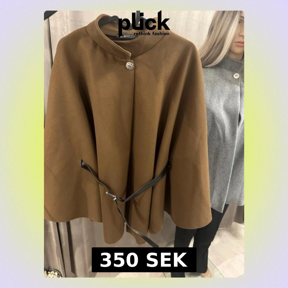 Snygg brun cape-kappa från Kuzary City med elegant silverfärgad knapp upptill och svart bälte i midjan. Kappan har en klassisk, vid form och hög krage som ger en stilren look. Perfekt för dig som vill sticka ut med en trendig och tidlös stil.