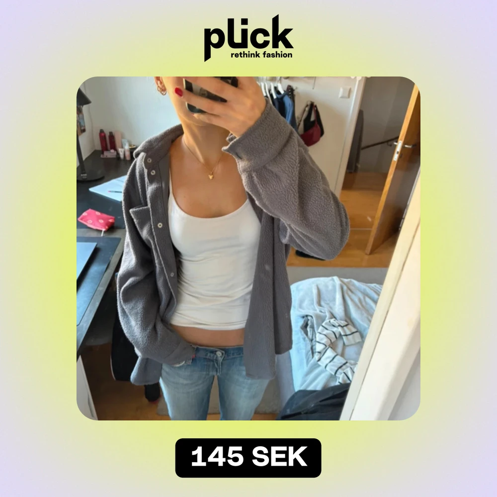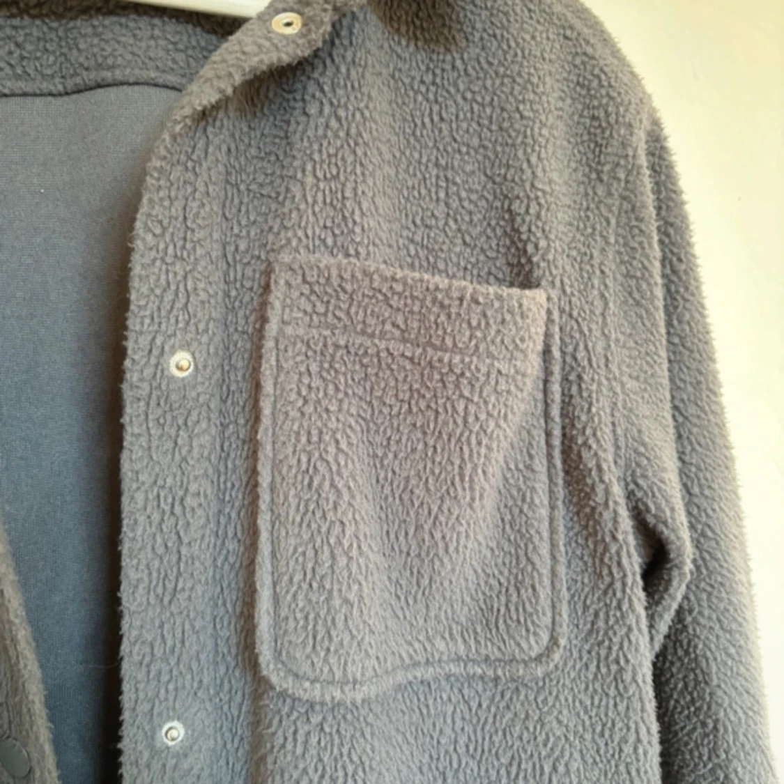 Supersnygg fleecejacka från Weekday som nästan aldrig har använts så i superbra skick!! Ficka på bröstet, knappar, samt knäppning vid ärmsluten. Det är storlek XS, men den är oversized i modellen så jag skulle snarare säga S.