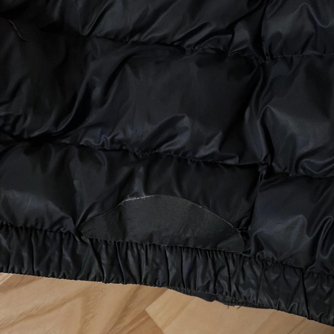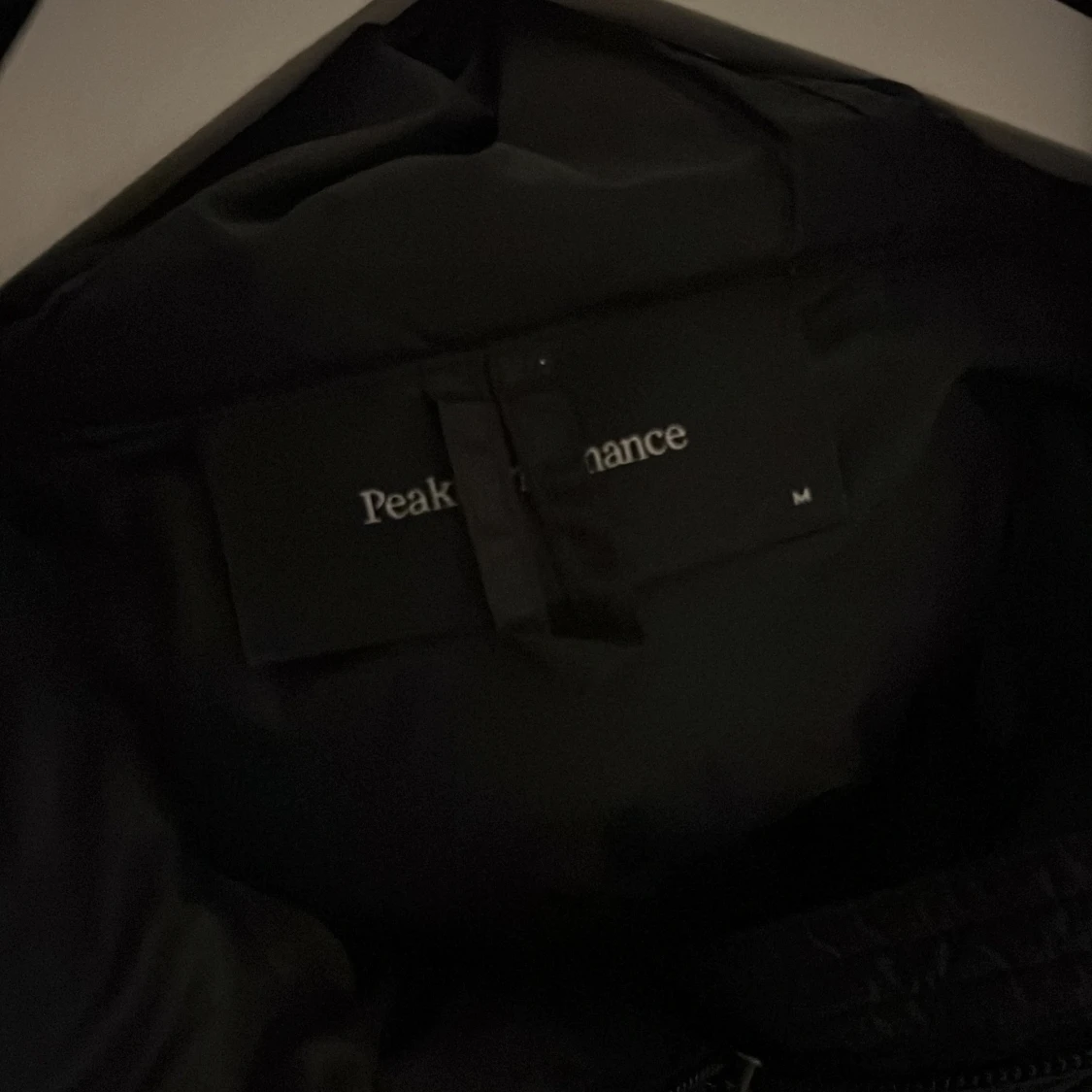 Svart dunjacka från Peak Performance i storlek M. Jackan har huva, dragkedja framtill och ribbade muddar vid ärmslut. Klassisk pufferstil med horisontella sömmar och diskret logga på bröstet. Perfekt för kalla dagar och riktigt snygg streetstil.