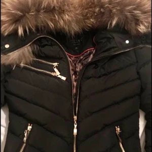 Dunjacka med äkta raccoon pälskrage. En present som jag inte fått någon användning för så är i hur fint skick som helst. Strl 34. Nypris : ca 3500-3998kr. Kan mötas i centrala Malmö eller skicka, frakt hamnar på cirka 100kr tror jag! 1900kr + 100kr FRAKT.