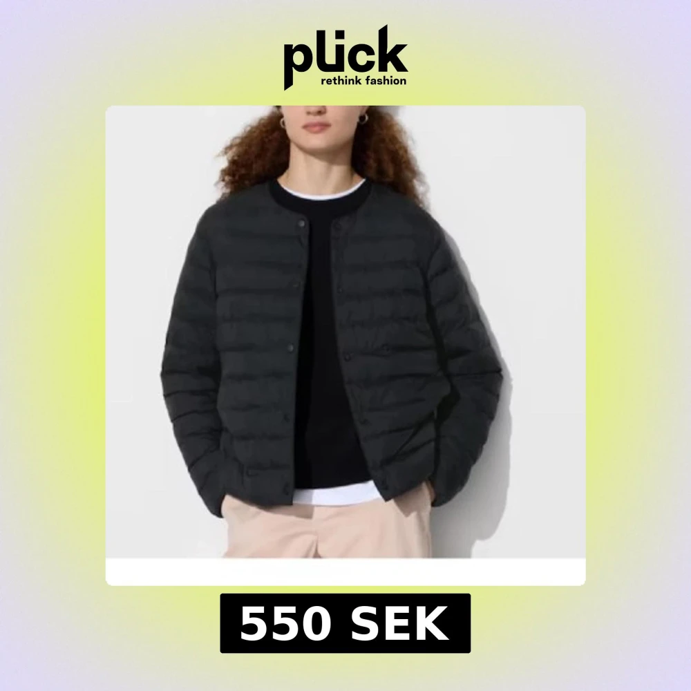 Snygg svart pufferjacka med rund halsringning och knäppning framtill. Jackan har en quiltad design och är lätt vadderad, perfekt för kyligare dagar. Enkel och stilren modell som passar till det mesta.