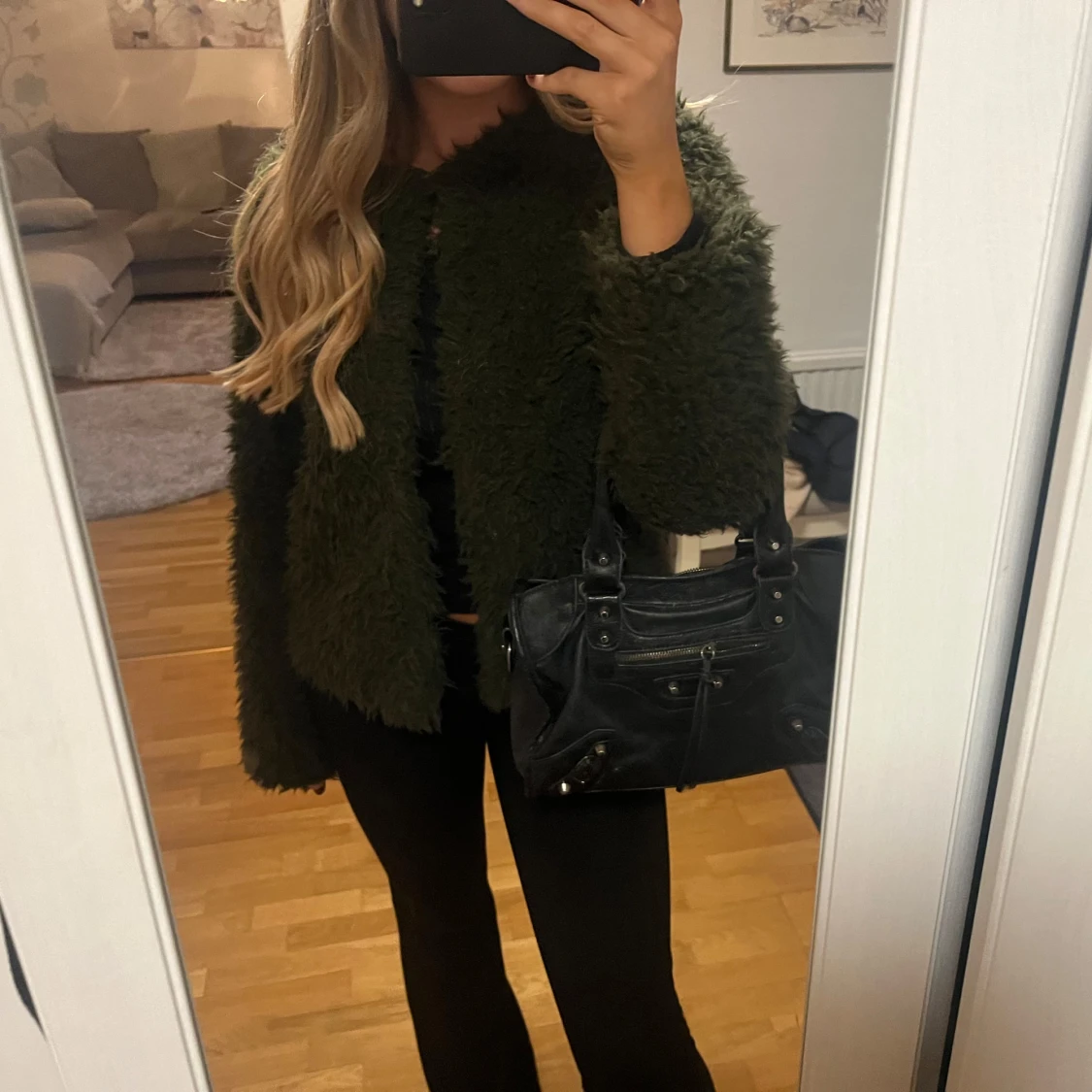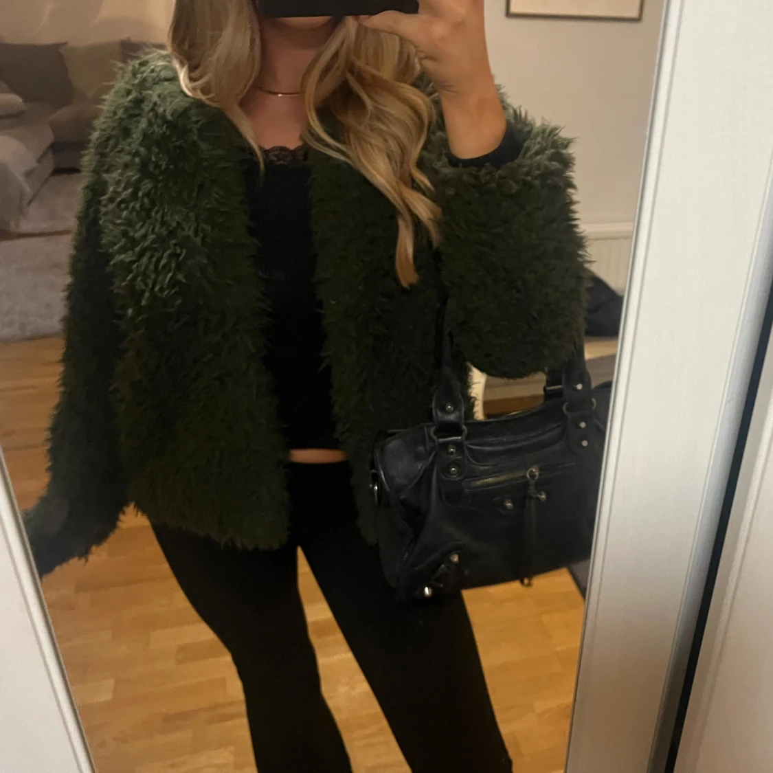 Säljer denna skitsnygga pälsjackan i storlek Xl (dock tycker jag den är liten i storleken) superfin grön färg på jackan🤍Den har en typ av knapp vid kragen så går att stänga den lite. Håller värmen superbra🤍 bra skick🤍