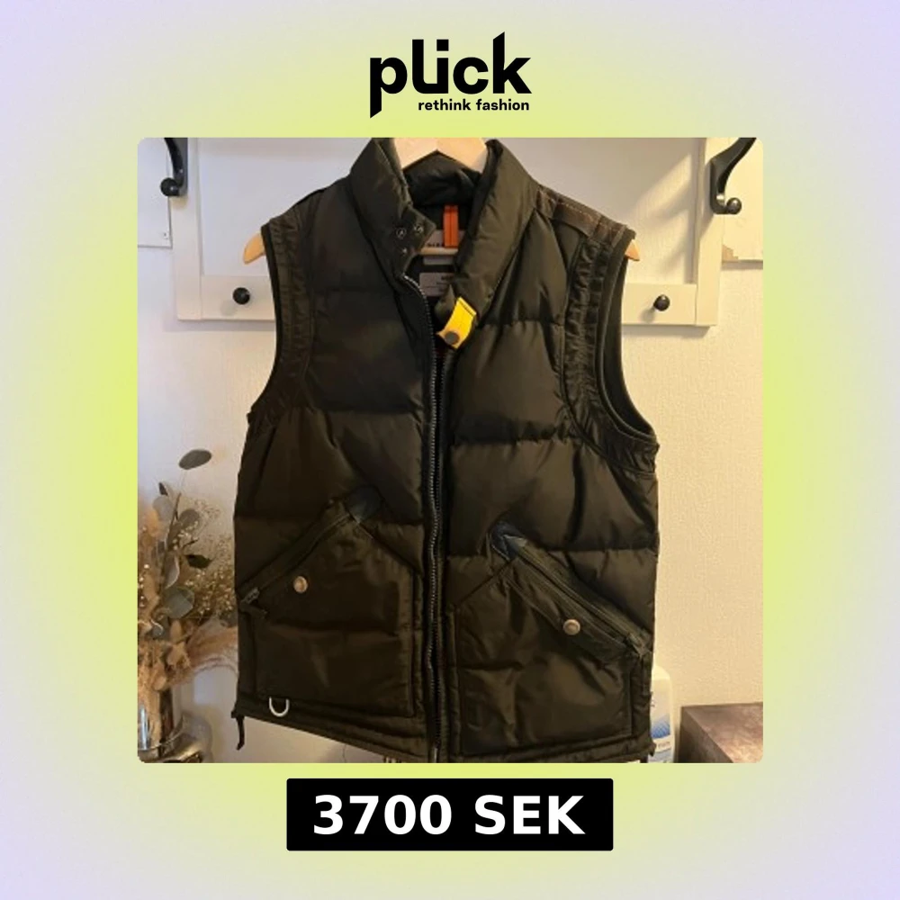 Snygg svart dunväst från Parajumpers med dragkedja och knappar. Västen har praktiska fickor och en cool gul detalj vid halsen. Perfekt för kyligare dagar. Inga skador!!
