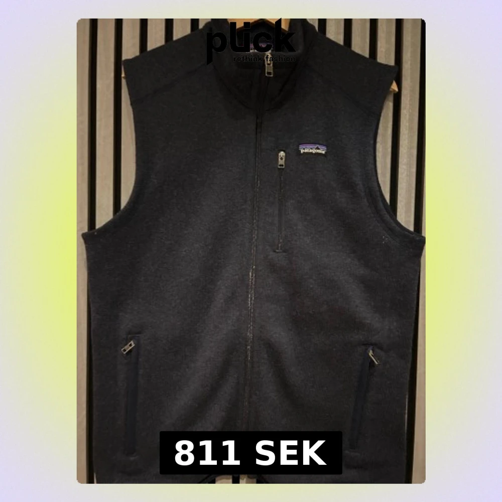 Snygg mörkblå fleeceväst från Patagonia med hög krage och tre praktiska fickor med dragkedja. Västen har en stilren look och är perfekt för lager-på-lager. Mjuk insida och diskret logga på bröstet. Passar dig som gillar outdoor och chill stil. Vänsten är använd relativt mycket men är i fint skick och inga defekter