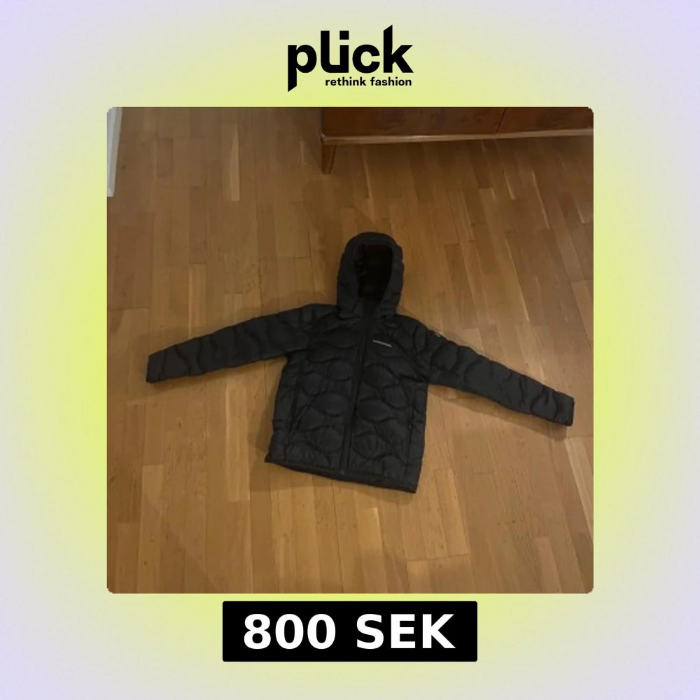 Säljer en svart quiltad jacka från Peak Performance. Jackan har en huva och dragkedja framtill. Perfekt för kyligare dagar.