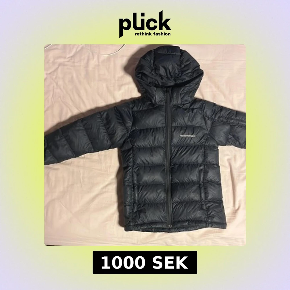 Säljer en svart dunjacka från Peak Performance med huva och dragkedja framtill. Jackan har ett quiltat mönster och logga på bröstet samt ärmarna. Perfekt för kalla dagar och har en clean, sportig look. Priset är inte hugget i sten och går självklart att förhandla 🤗