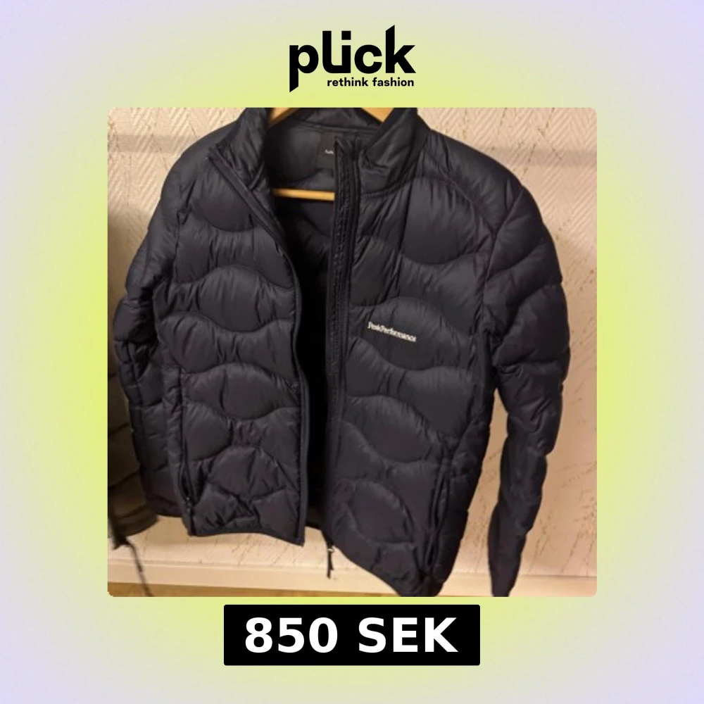Snygg mörkblå pufferjacka från Peak Performance med vågigt quiltad design och diskret logga på bröstet. Jackan har dragkedja framtill och är tillverkad i lätt polyester, perfekt för kyliga dagar. Passformen är normal och jackan har långa ärmar. Passar storlek S