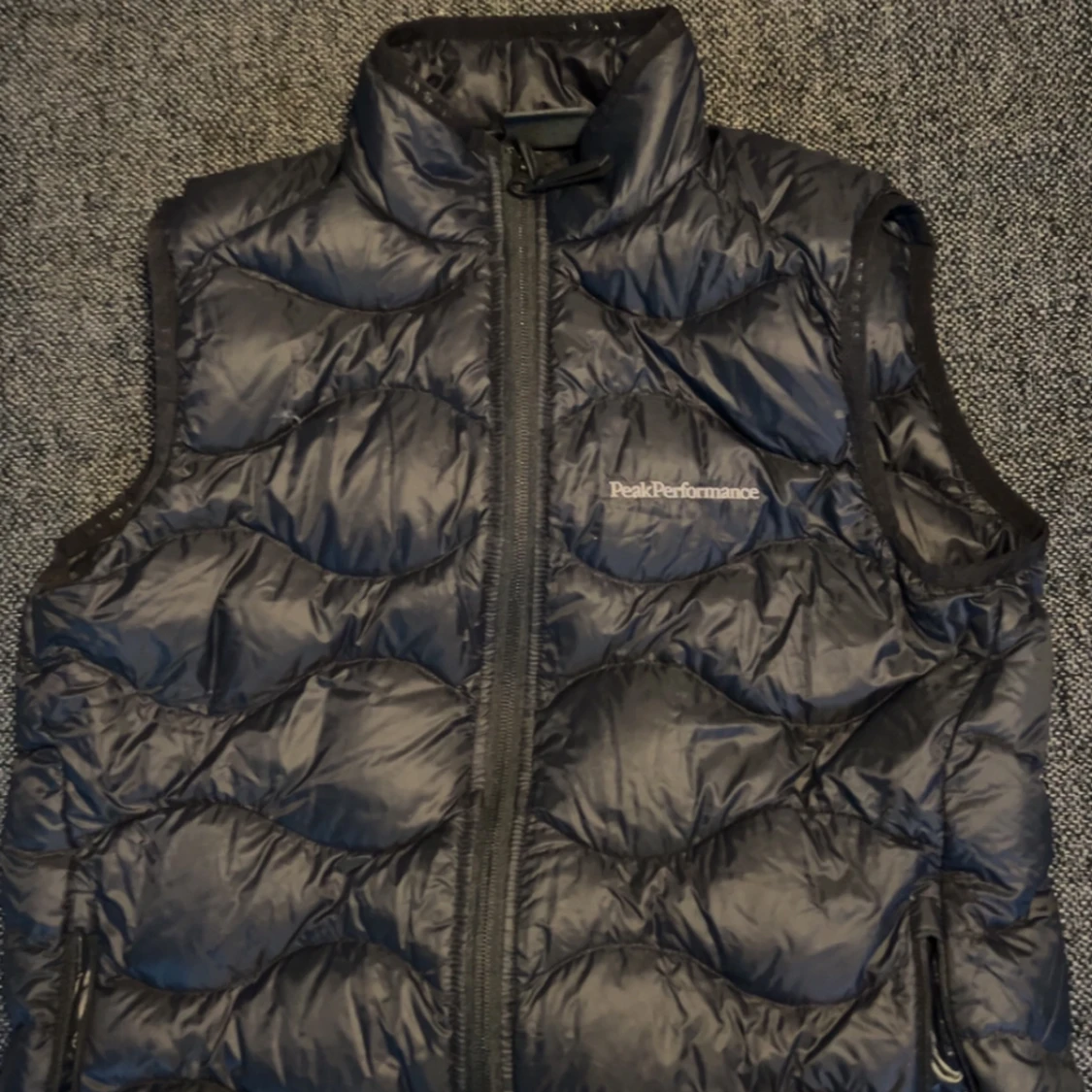 Snygg svart dunväst från Peak Performance med dragkedja och quiltad design. Perfekt för kyliga dagar och ger en sportig look. Västen har en hög krage och praktiska fickor med dragkedja.