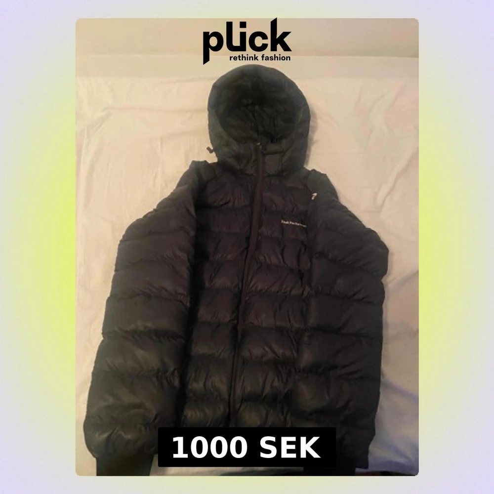 Säljer en svart dunjacka från Peak Performance med huva och lång ärm. Jackan har en quiltad design och dragkedja framtill. Perfekt för kalla dagar och har en clean, sportig look som funkar till streetwear. Jackan är i storlek 170.