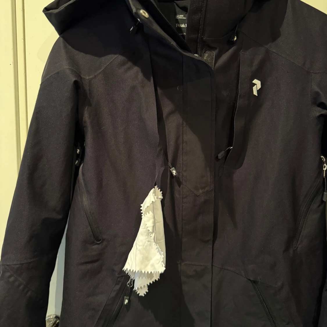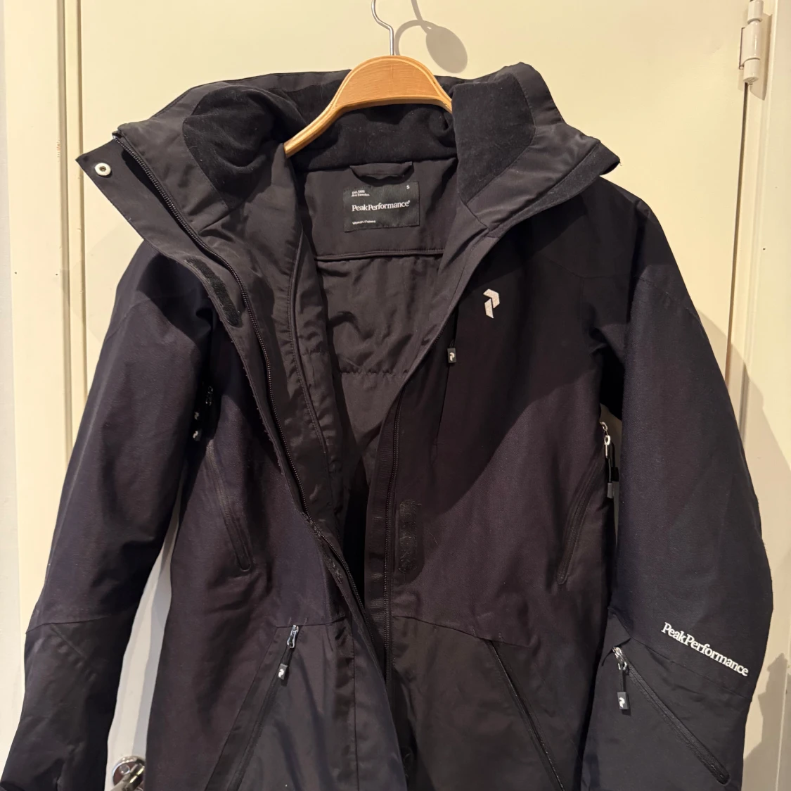 Säljer en svart vadderad jacka från Peak Performance med dragkedja och huva. Jackan har långa ärmar och flera praktiska fickor. Perfekt för skidåkning, utrustad med recco, putsduk för Googles och har en stilren design med logotypdetaljer. Vind och vatten tät, Hipe membran. Mycket fint skick, använd endast några gånger pga fel storlek. Nypris 4500 kr.