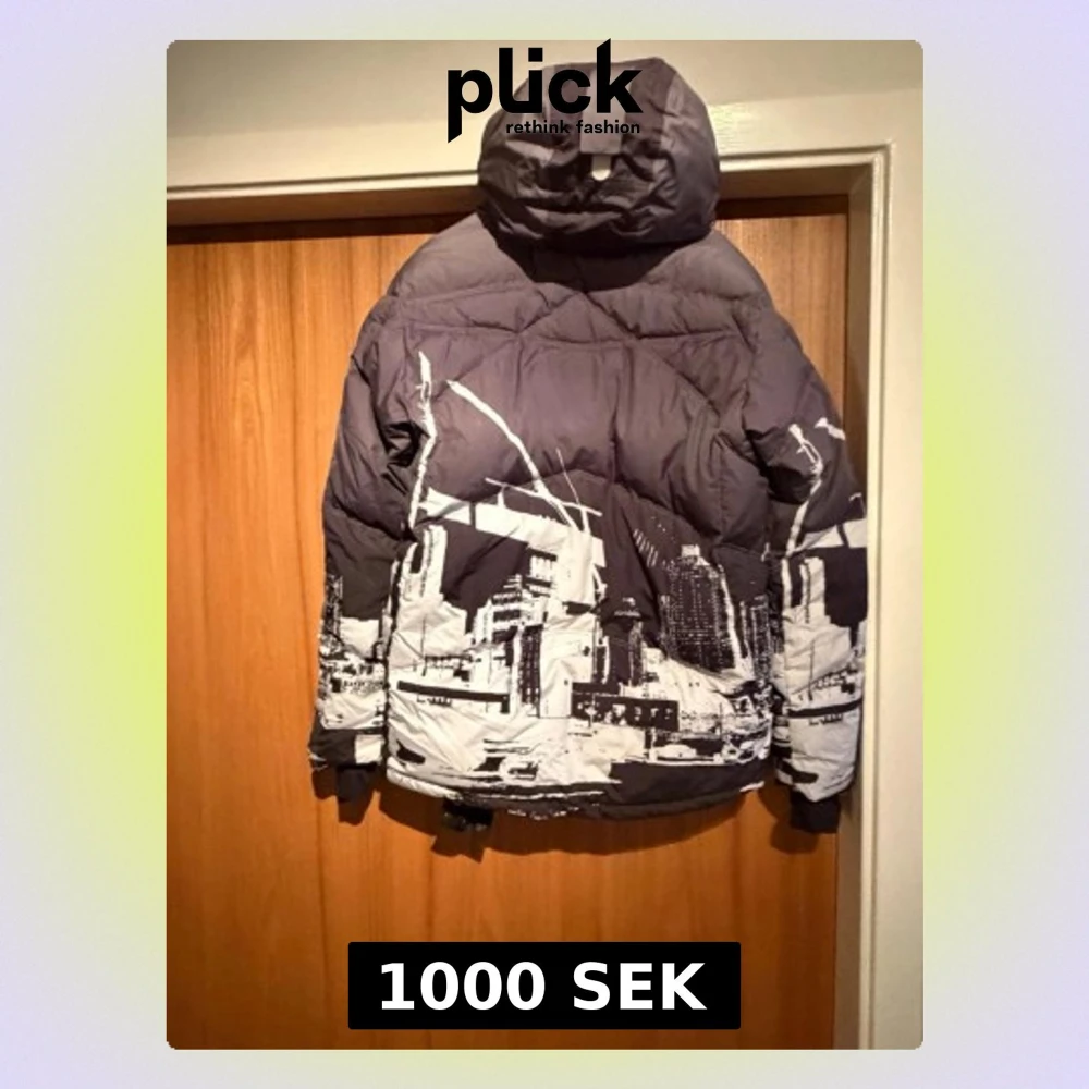 Säljer en fet dunjacka från Peak Performance i storlek L. Jackan är mörkgrå och vit med ett grafiskt stadsmotiv, har röda dragkedjor och huva. Perfekt för kalla dagar, riktigt skön och har flera fickor med dragkedja.