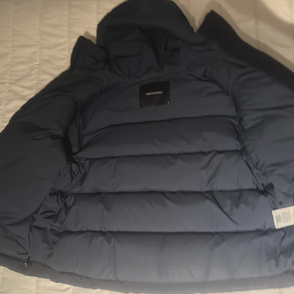 Kom med pris. Säljer en mörkblå pufferjacka från Peak Performance i storlek M. Köpte för 4200kr endast använt få tal gånger, slutade använda för fick en moncler i födelsedagspresent. Jackan har huva, dragkedja framtill och breda, quiltade paneler. Perfekt för kalla dagar och riktigt snygg streetstil. Materialet är mjukt och känns riktigt lyxigt.