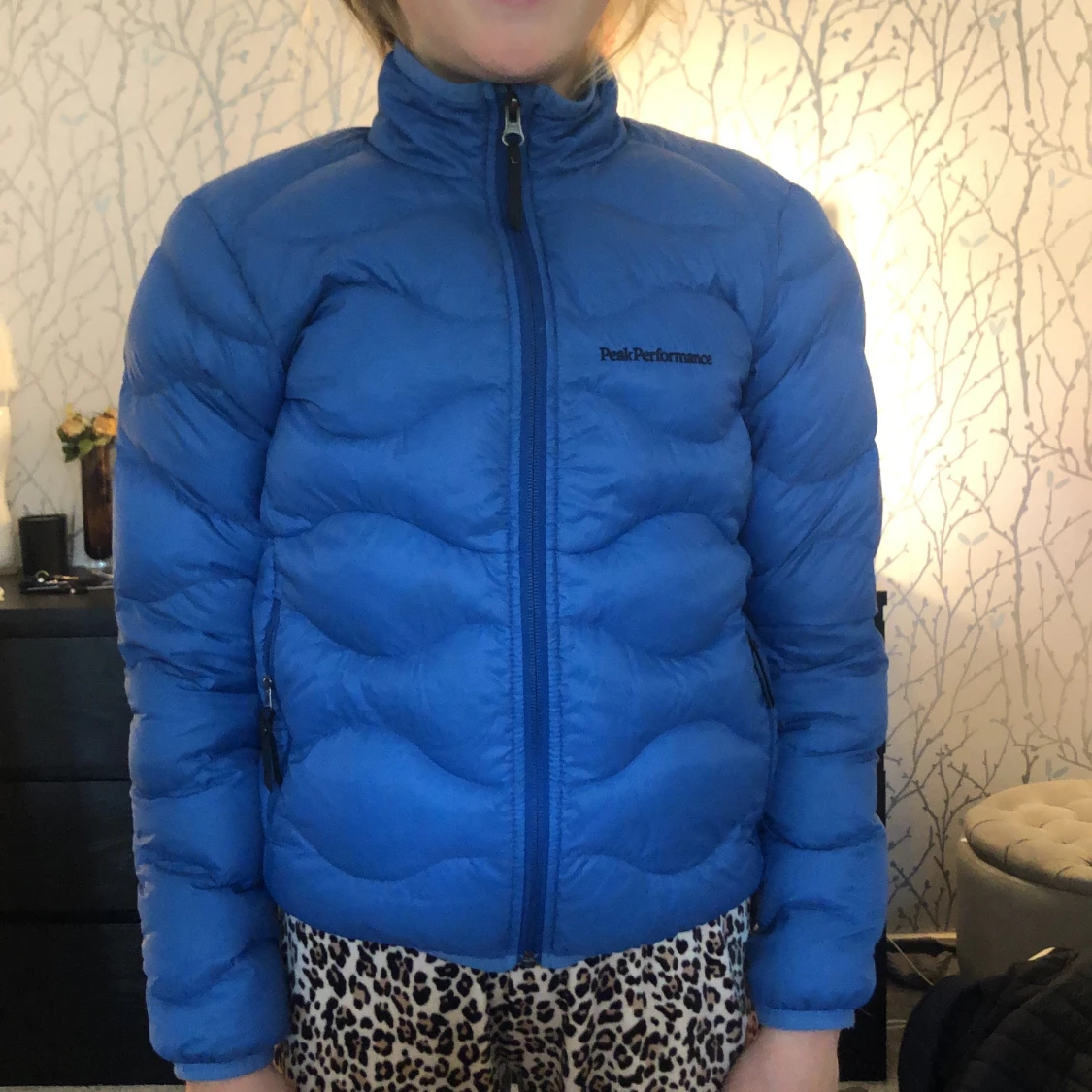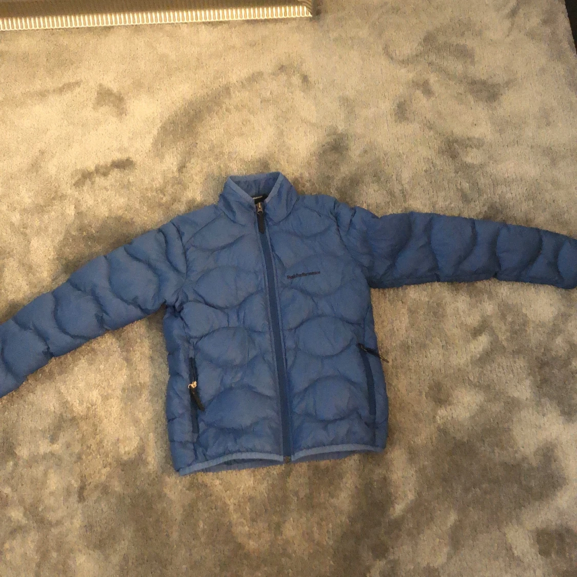 Blå peak performance jacka i stl 140.Sitter jätte fint på och inga skador.