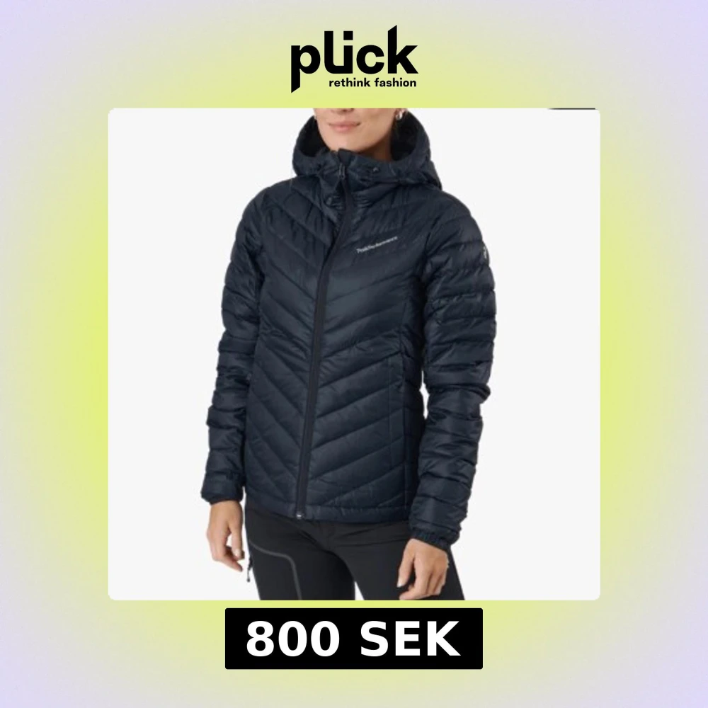 Snygg och funktionell svart dunjacka från Peak Performance med huva och dragkedja. Jackan har ett quiltat mönster och är perfekt för kyliga dagar. Den är långärmad och har en figurnära passform. Nypris 2800kr