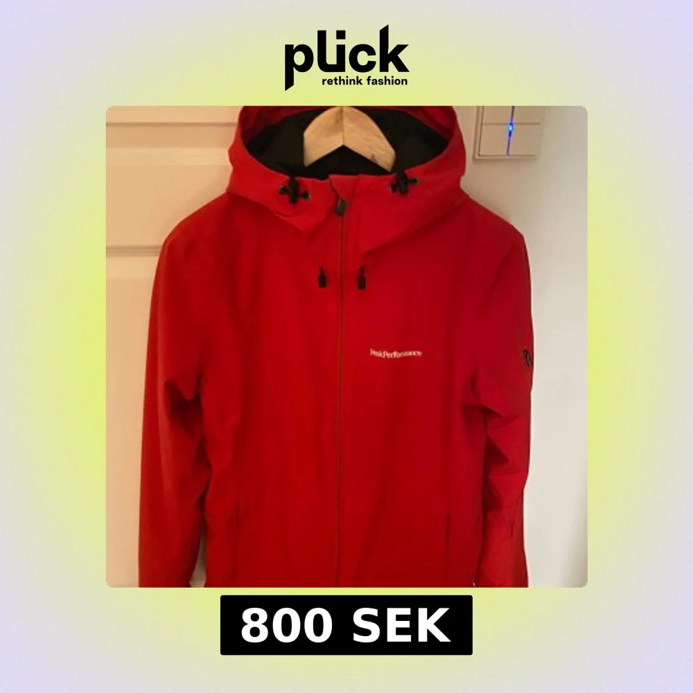 Snygg röd skidjacka från Peak Performance med dragkedja och justerbar huva. Perfekt för blåsiga dagar och utomhusaktiviteter. Jackan har en stilren design med diskret logga på bröstet.