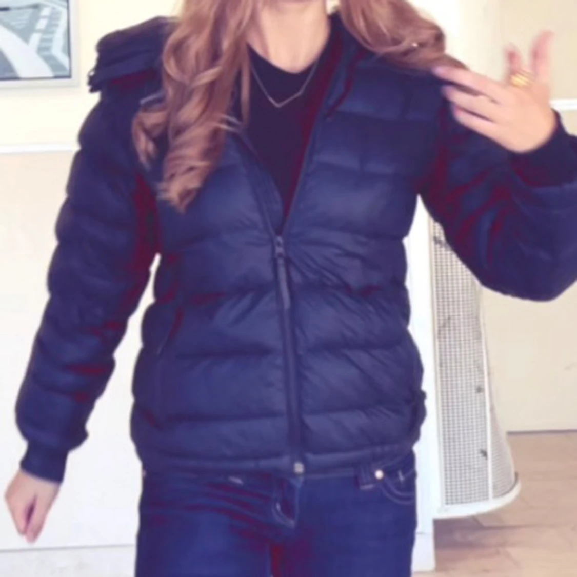 Säljer en svart dunjacka från Peak Performance med huva och dragkedja framtill. Jackan har ett quiltat mönster och är perfekt för kalla dagar. Den är långärmad och har en klassisk, normal passform. Snygg och enkel att matcha med din vardagsstil. Den har två små håll på armbågen som jag har haft i 1 år nu och ingen har märkt så de syns inte