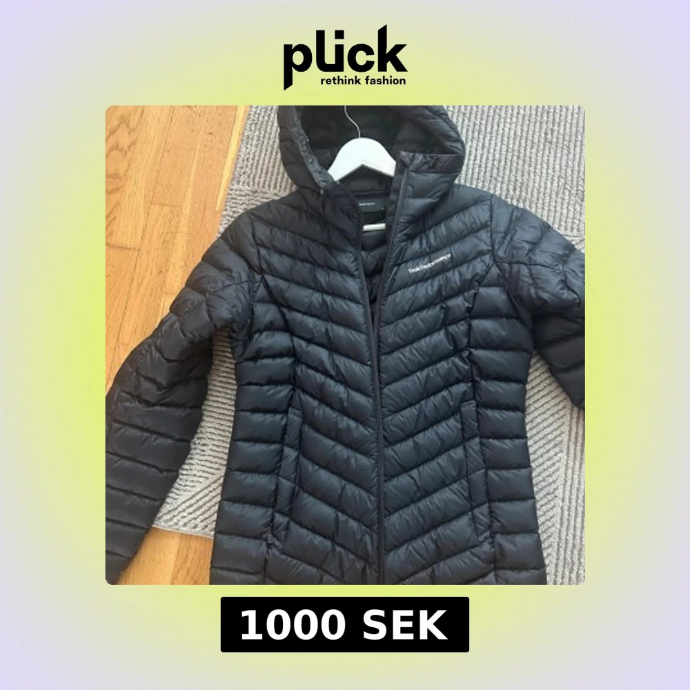 Snygg svart dunjacka från Peak Performance med huva och dragkedja. Jackan har ett quiltat mönster och är perfekt för kyliga dagar. Lätt och smidig att bära, med diskret logga på bröstet. Passar dig som gillar stilren och sportig look.