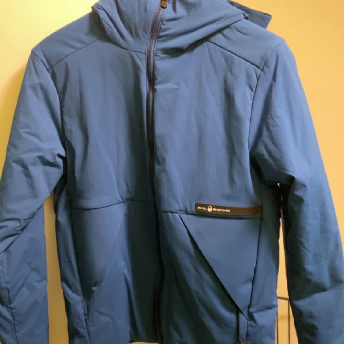 Säljer en snygg blå jacka från sali Racing. Jackan har en praktisk huva och dragkedja framtill. Perfekt för kyligare dagar med sin stilrena design och funktionella fickor.
