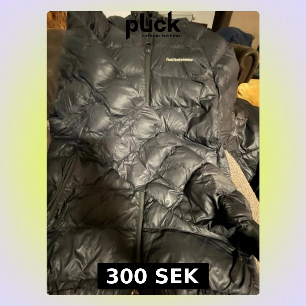 Svart dunjacka från Peak Performance i storlek M. Jackan har en puffig look, hel dragkedja framtill och två sidofickor med dragkedja. Perfekt för kalla dagar och har en stilren design med diskret logga på bröstet.