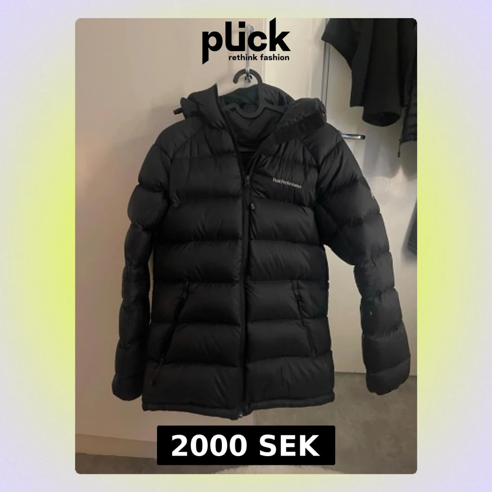 Säljer min svarta jacka från Peak Performance i storlek S, använd få talet gånger. Jackan är som ny i skicket även om den är använd några gånger.