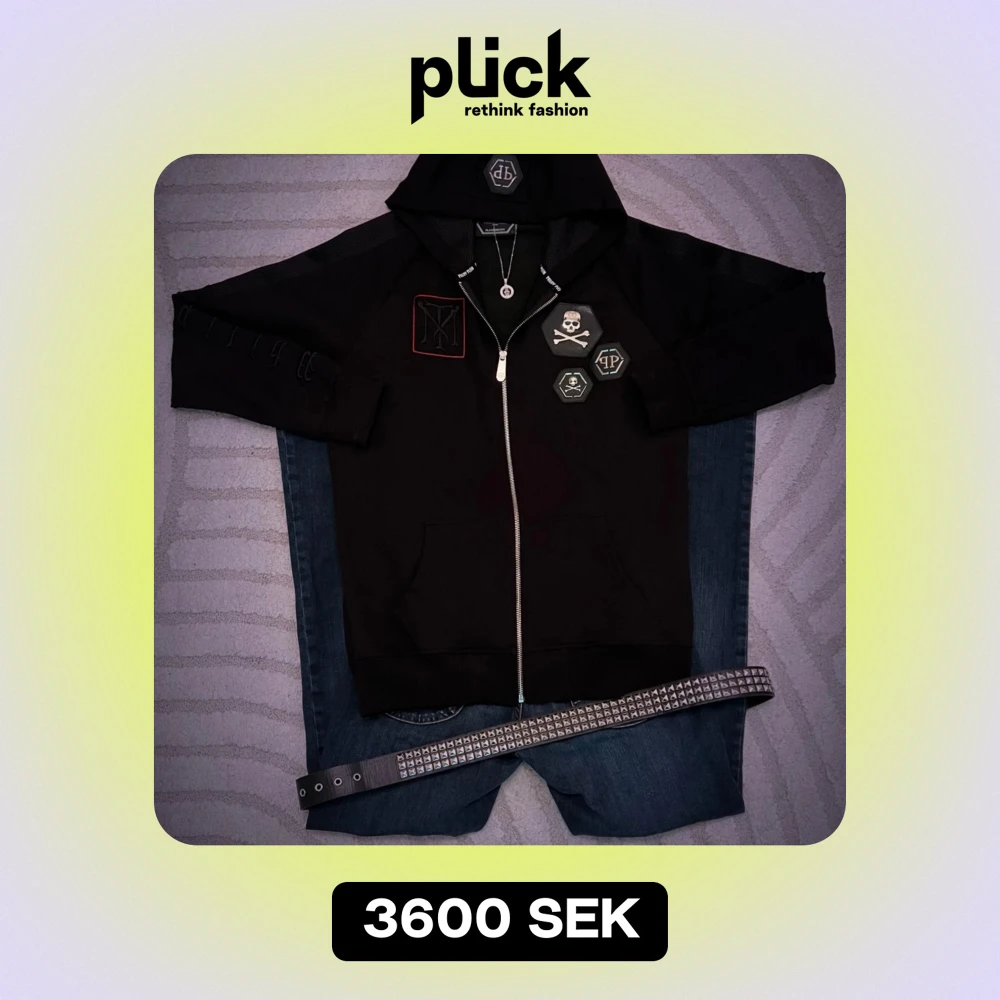 INTE FASTA PRISET, TAR PRIS FÖRSLAG Säljer en svart hoodie från Philipp Plein med coola Scarface-motiv på baksidan och dödskalle-detaljer fram. Den har en dragkedja och är långärmad, perfekt för höst och vår. Grymt snygg och unik stil för dig som vill sticka ut! DEN ÄR ÄKTA, jag kan visa bevis om intresserad. ny pris är över 14,000 men priset kan diskuteras. Large men passar mer som medium
