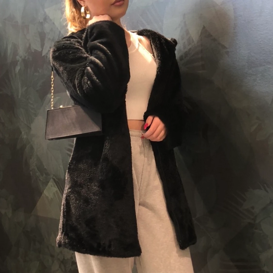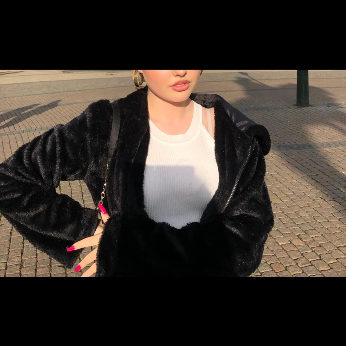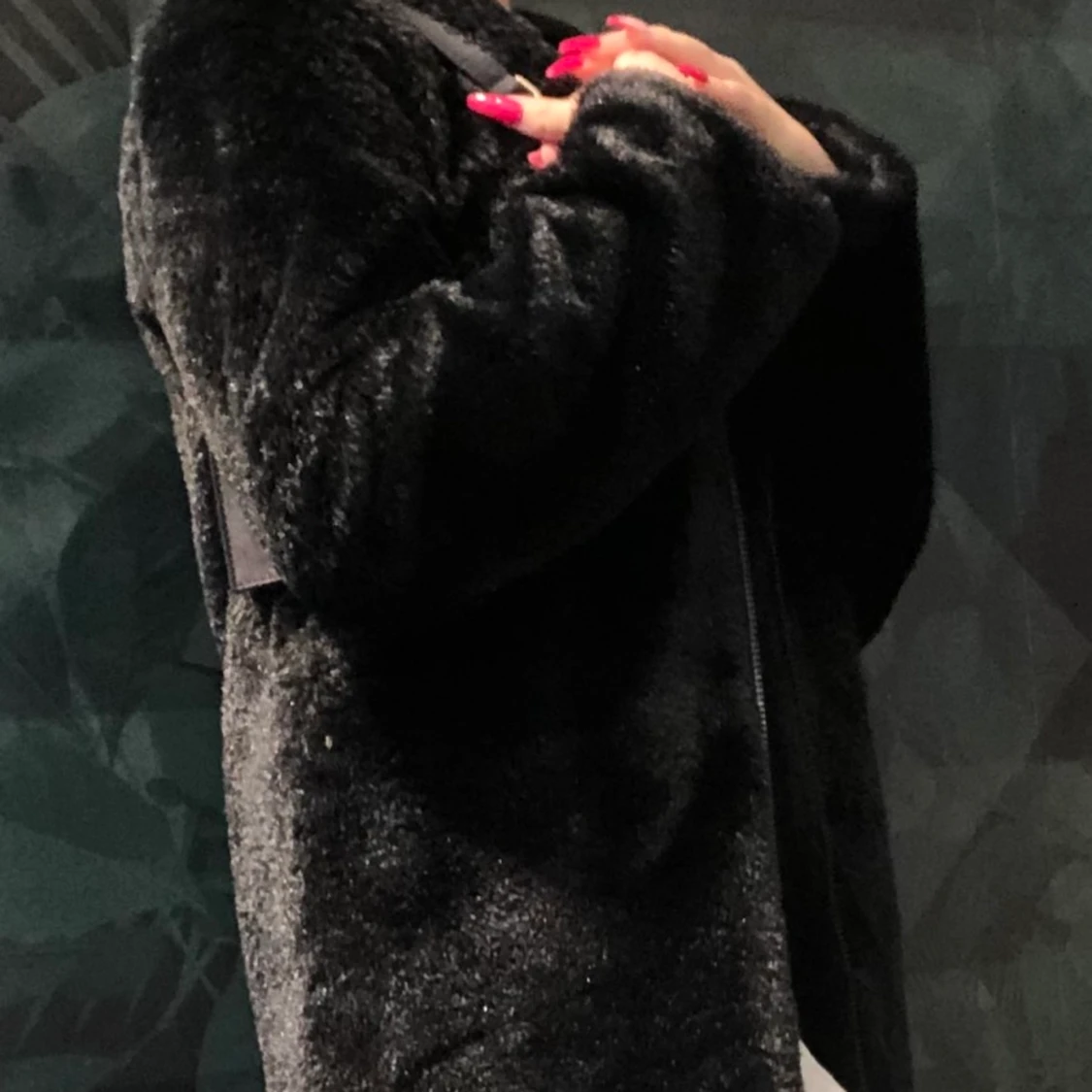 En vår/höst jacka med svart fuskpäls. Strl s/m, 50kr frakt!!