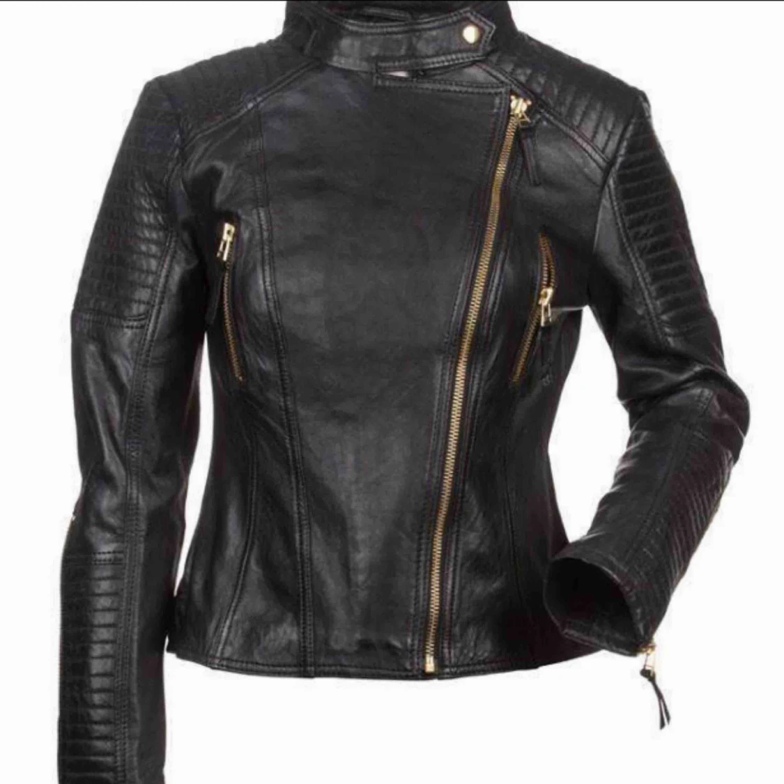 Intressekoll funderar på att sälja min primeboots skinjacka då den inte kommer till användning längre, storlek 36 med gulddetaljer🌸