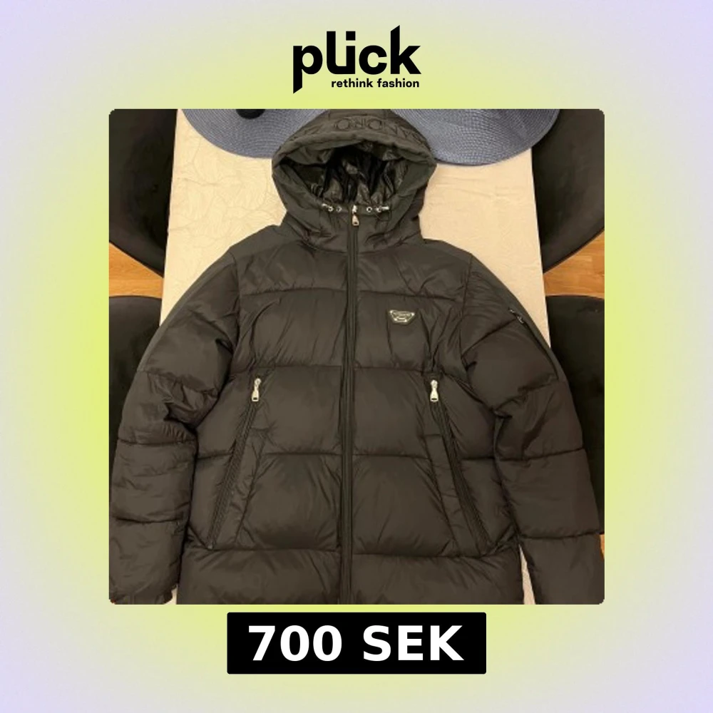 Säljer en svart pufferjacka från Alessandro Zavetti med huva och silverfärgade dragkedjor. Jackan har ett mönstrat innerfoder med logotyp, två sidofickor med dragkedja och ett märke på bröstet. Perfekt för kalla dagar.