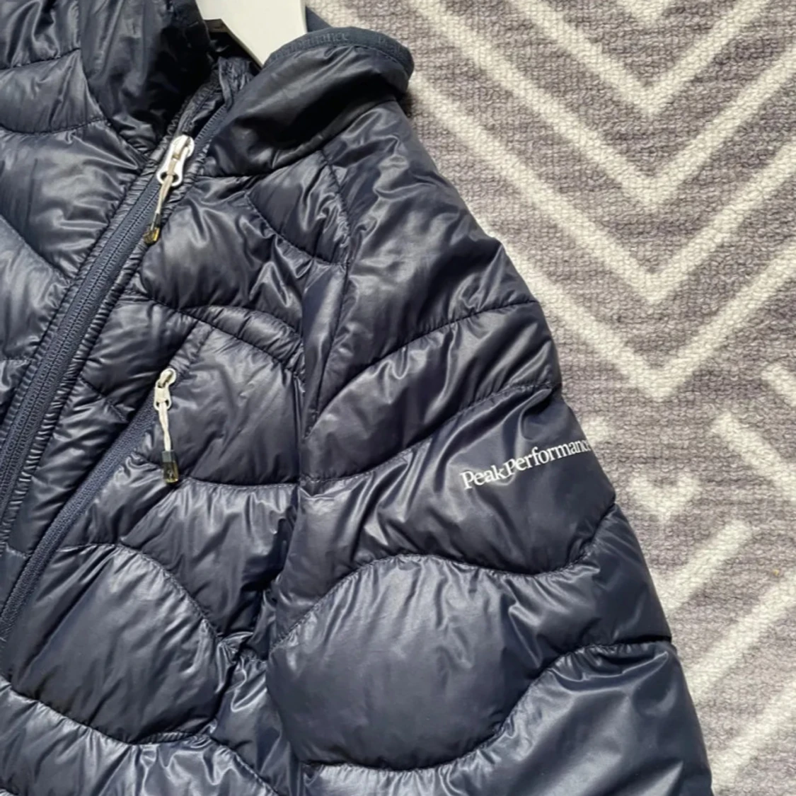 Snygg svart pufferjacka från Peak Performance med dragkedja framtill och en hög krage. Jackan har inga defekter.