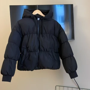 Svart pufferjacket - Säljer denna svarta pufferjacketen i storlek xxs. Den är i väldigt bra skick och är knappt använd, den är väldigt varm och skön till vinter. Den har band som är justerbara.