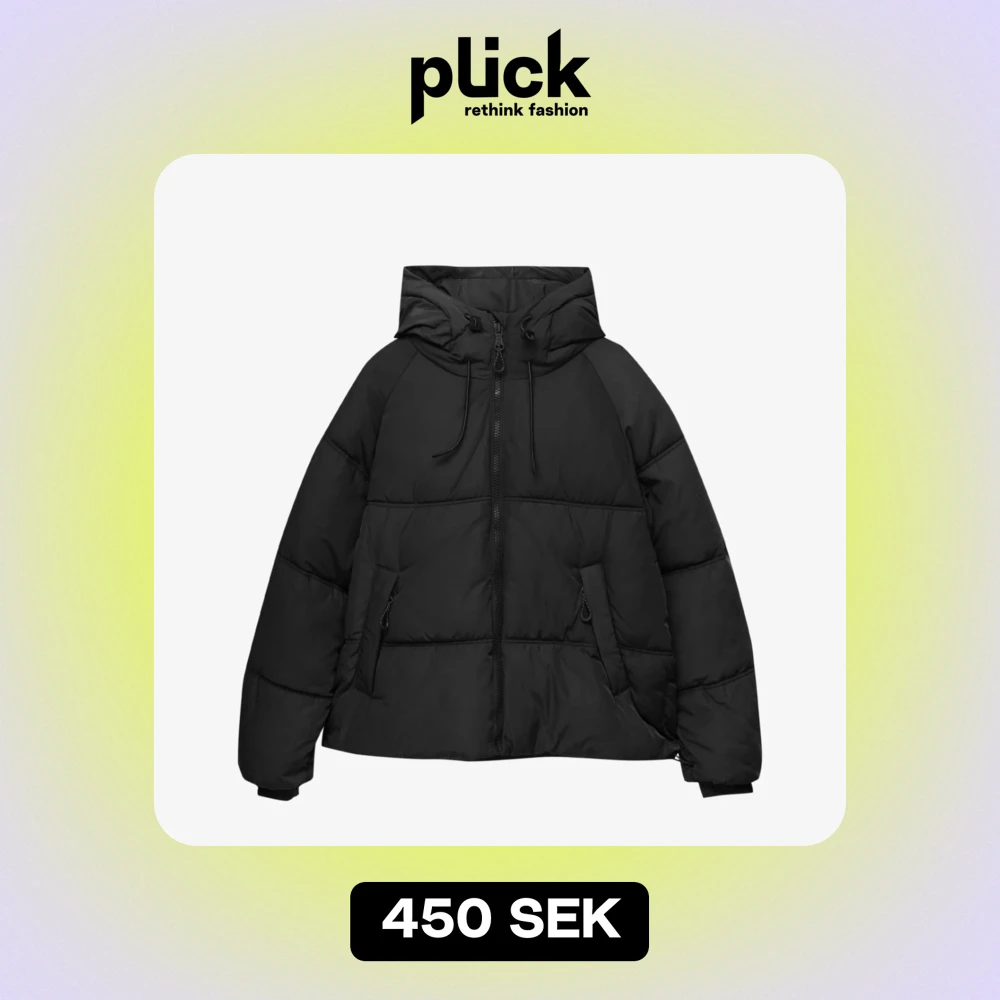 Svart pufferjacka med huva