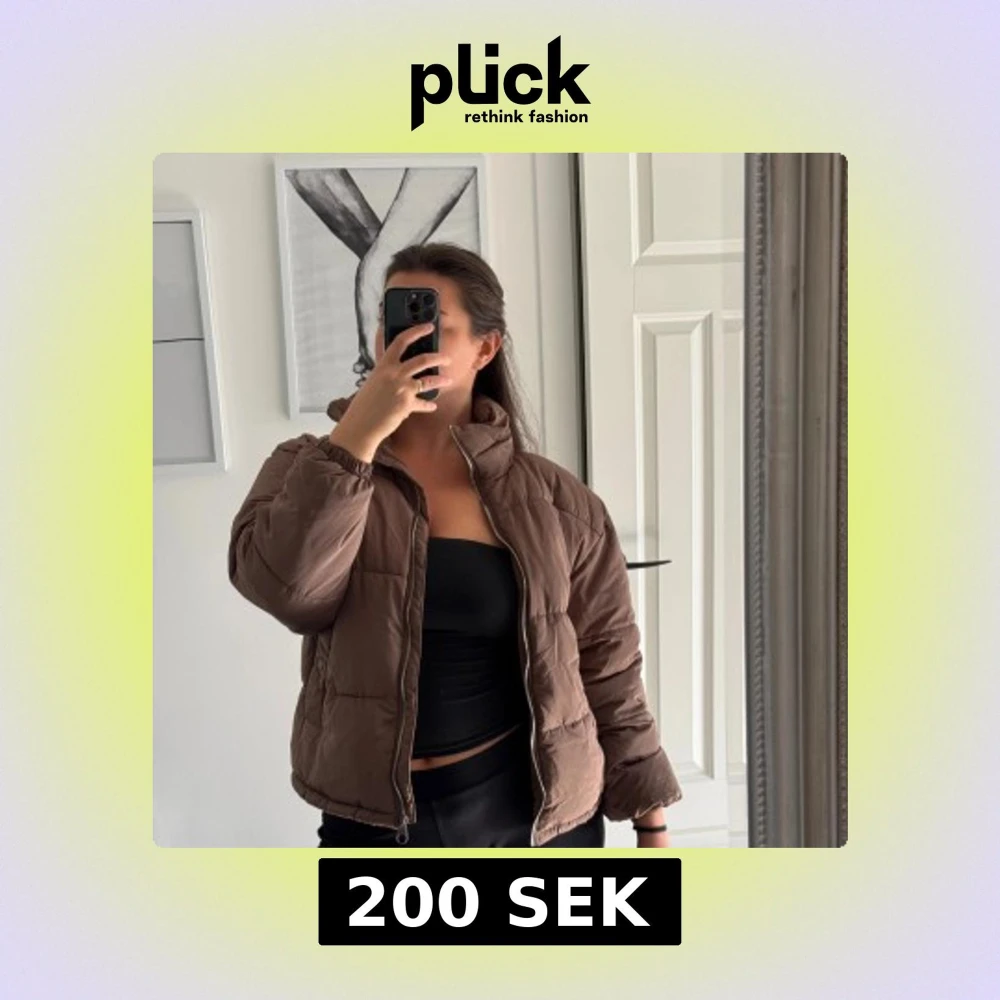 Säljer en brun pufferjacka från Pull&Bear med hög krage och dragkedja framtill. Jackan är quiltad och har en loose passform, perfekt för kyligare dagar. Fodrad insida och elastiska muddar vid ärmslut. Enkel och stilren design.