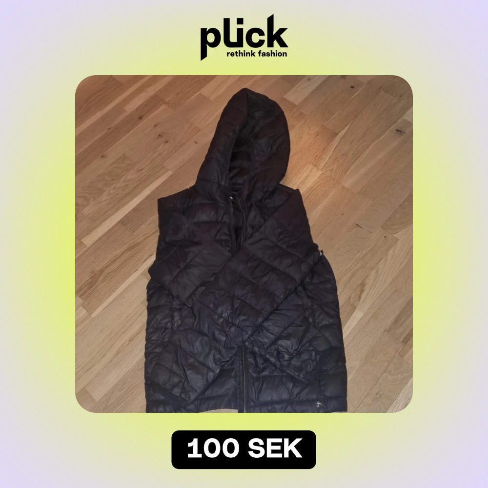 Säljer en svart jacka från Pull&Bear i storlek S. Jackan har en dragkedja och är perfekt för hösten. Den är quiltad och har en huva för extra värme. Notera att det finns en reva på sidan som behöver lagas. Perfekt för dig som gillar en cool och avslappnad stil!