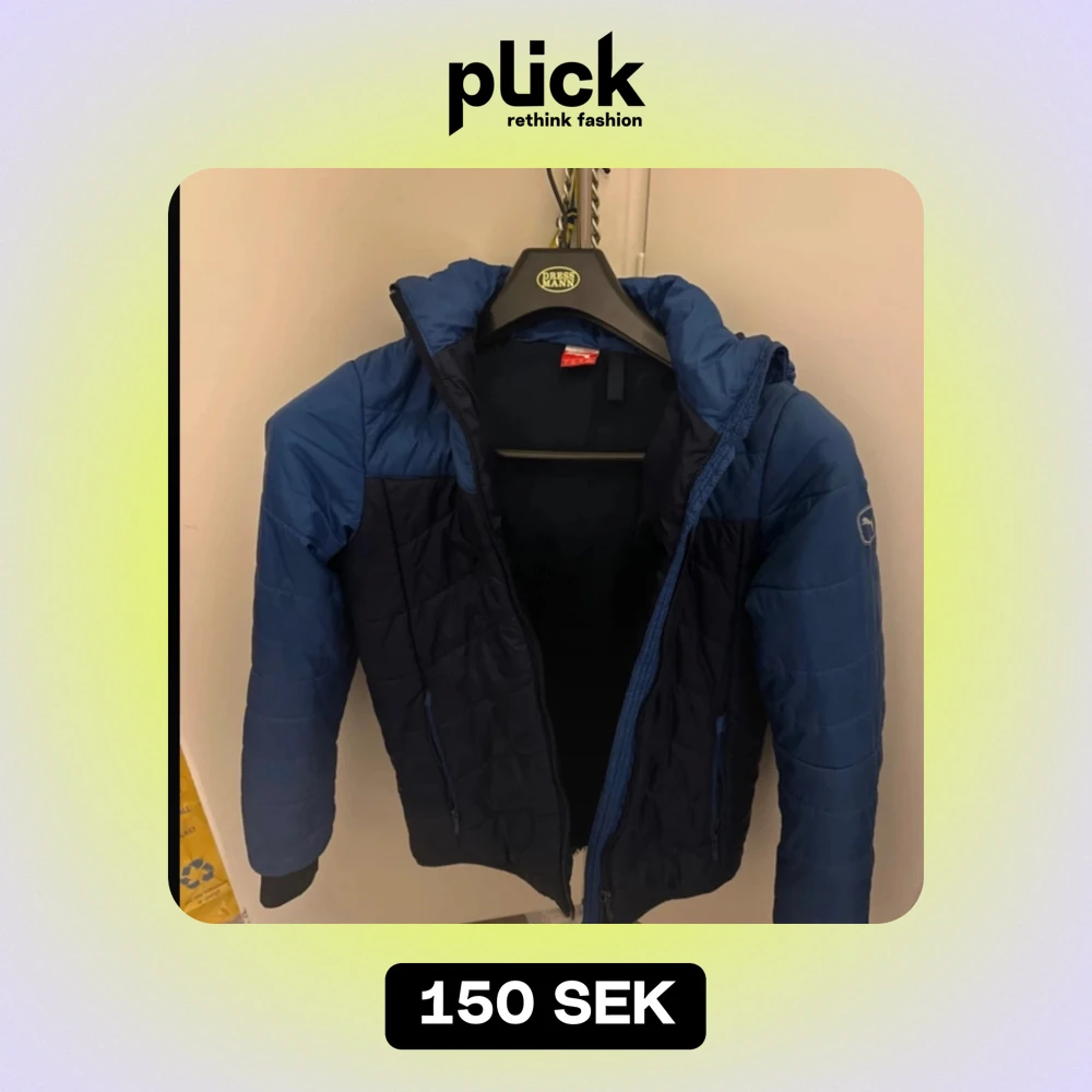 Säljer en snygg blå pufferjacka från Puma i storlek 152. Jackan har en dragkedja framtill och är perfekt för kyliga dagar. Den är i mycket bra skick och har en sportig stil som passar både till vardags och träning. Perfekt för höst och vinter!