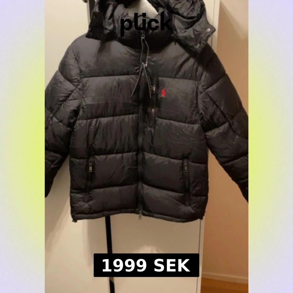 Svart dunjacka från Polo Ralph Lauren med röd broderad logga på bröstet. Jackan har huva, två sidofickor med dragkedja och en bröstficka med dragkedja. Puffad design och hel dragkedja framtill. Perfekt för kalla dagar.