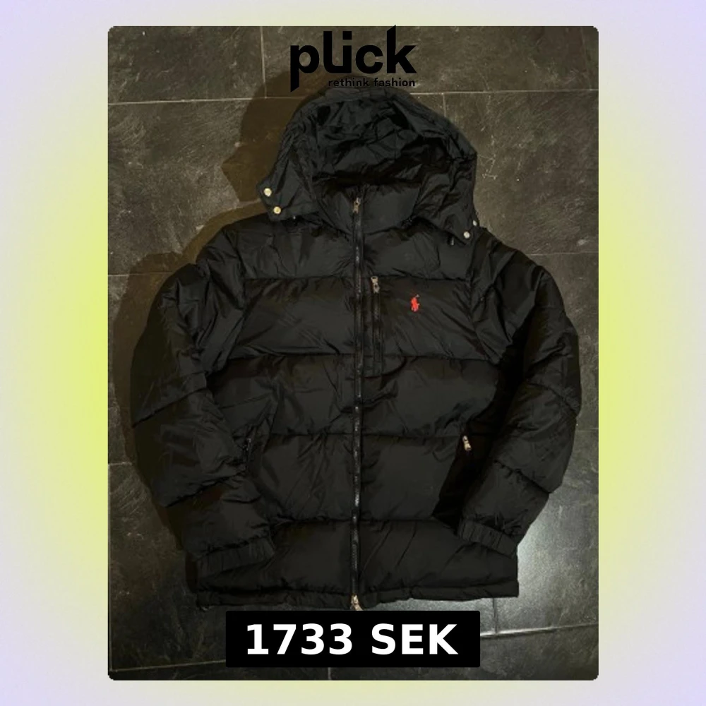 Svart pufferjacka från Polo Ralph Lauren med röd broderad logga på bröstet. Jackan har huva, dragkedja framtill och sidofickor med dragkedja. Materialet är syntet och jackan har en quiltad design som ger extra volym och värme.