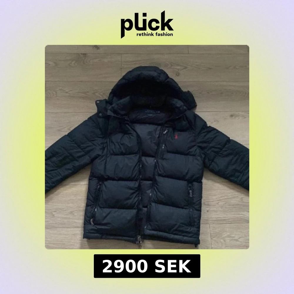 Säljer en svart dunjacka från Polo Ralph Lauren med huva och dragkedja. Jackan har långa ärmar och en broderad logotyp på bröstet. Perfekt för kalla dagar.