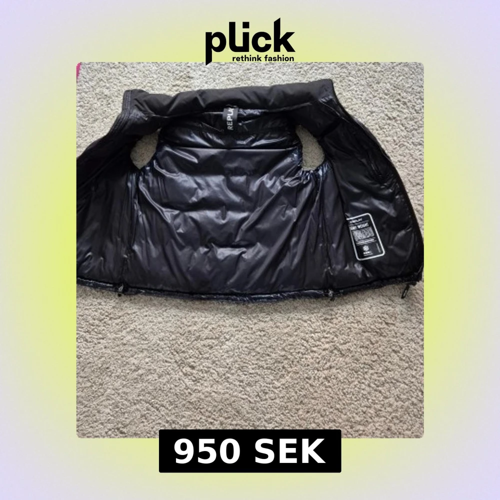 En stilren och funktionell svart och mörkblå dunväst från Replay, designad för att ge maximal värme och komfort. Västen har en blank, quiltad utsida och en lätt glansig finish som ger ett modernt och exklusivt utseende. Använd bara ett fåtal gånger. Storlek M. Skriv för fler bilder om något otydligt. Pris kan diskuteras