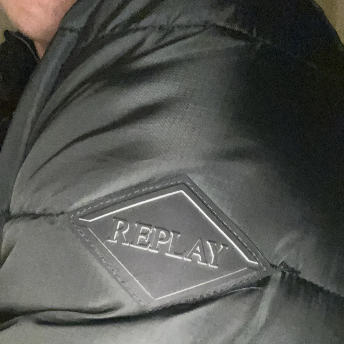Säljer en svart pufferjacka från Replay med diskret logga på ärmen. Jackan har quiltad design, dragkedja framtill och hög krage. Perfekt för kyliga dagar och ger en clean, modern look. Materialet är syntet och jackan har lång ärm. Använd en höst säsong ser helt ny ut