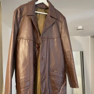 Oanvänd brun läderjacka. Oversized. Avtagbar päls inuti.