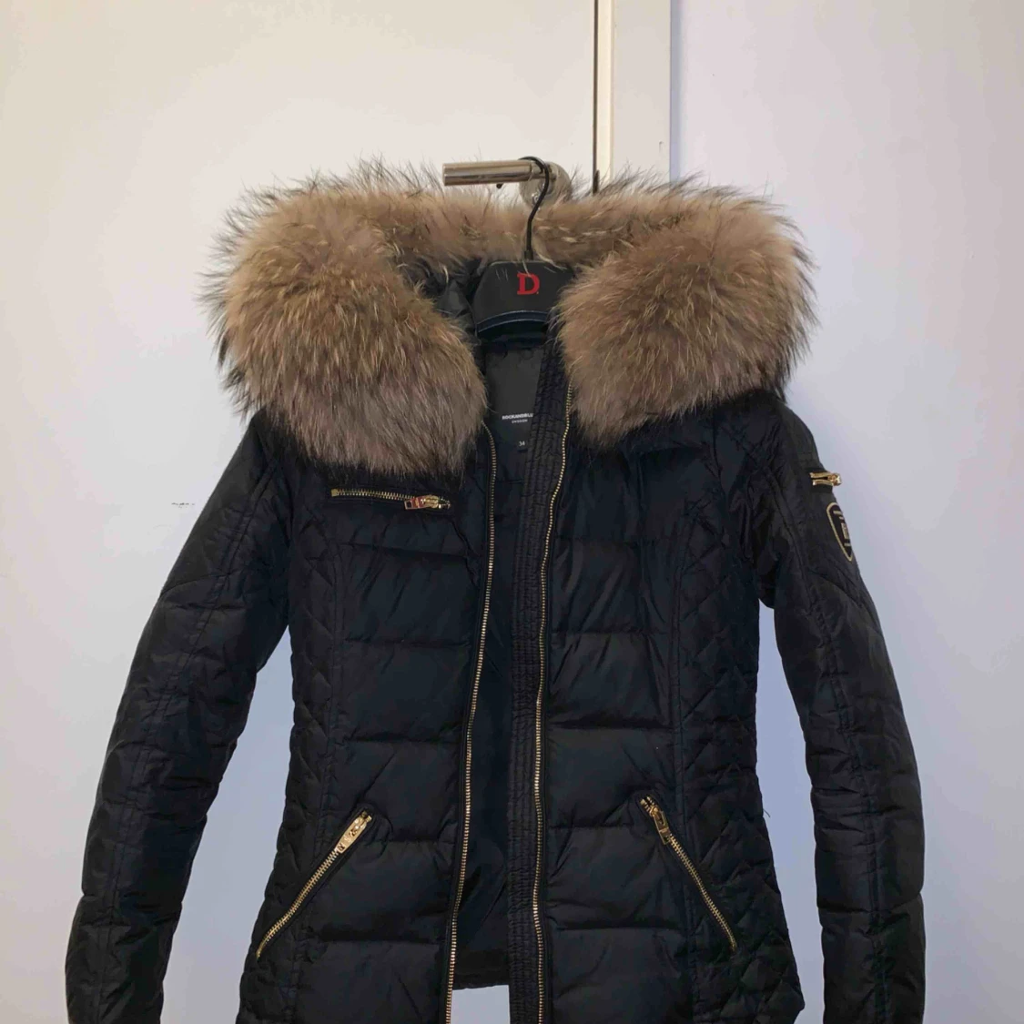 Använd 1 månad, inga fel på jackan lika fin som en ny, därför är priset 3000kr Storlek 34, äkta päls Köpt för 3500kr i triangel ( Alexandra Rockandblue ) påse och kvitto finns kvar finns i Malmö, annars står du för frakt