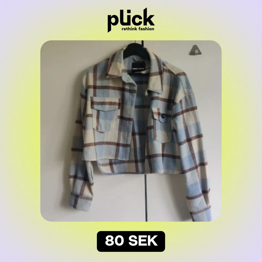 Rutig tunnare jacka, storlek M. Croppad men lite längre bak. Bra skick