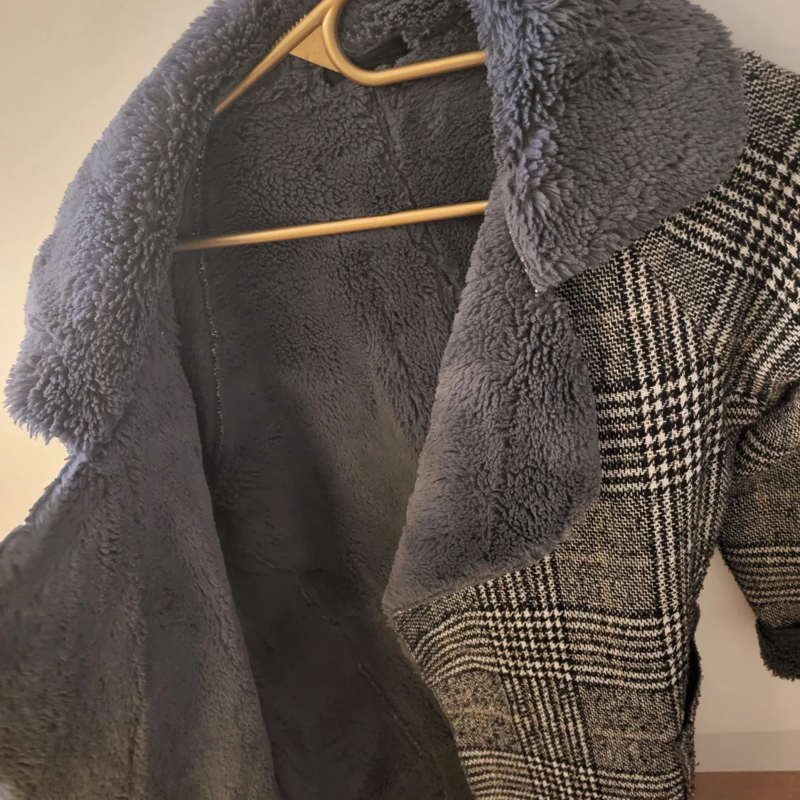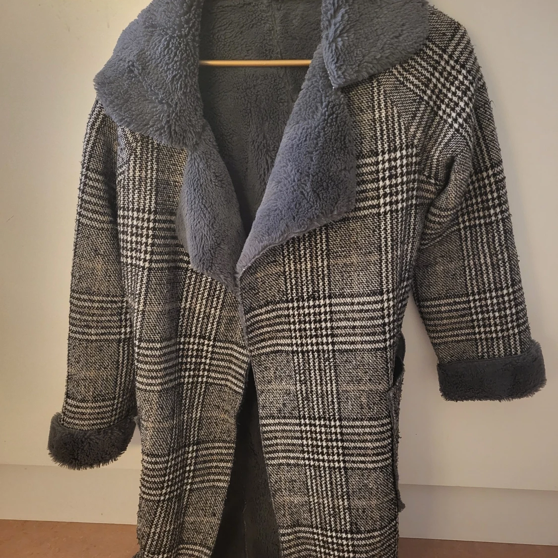 Säljer en snygg rutig kappa med mjukt teddyfoder. Den har en klassisk krage och långa ärmar. Perfekt för kyliga dagar när du vill hålla stilen. Skärp finns🖤