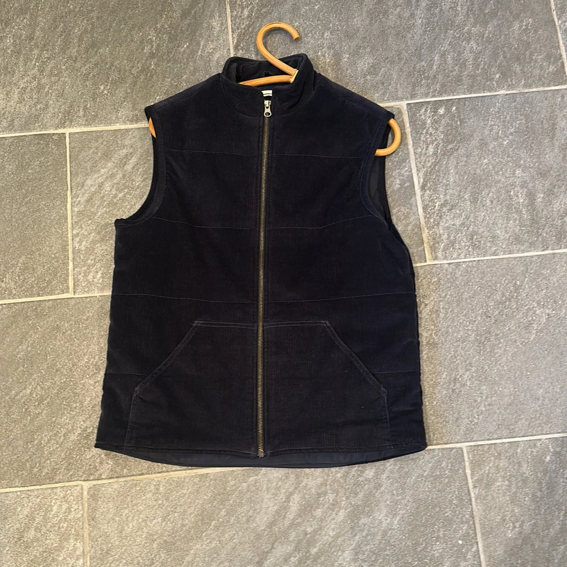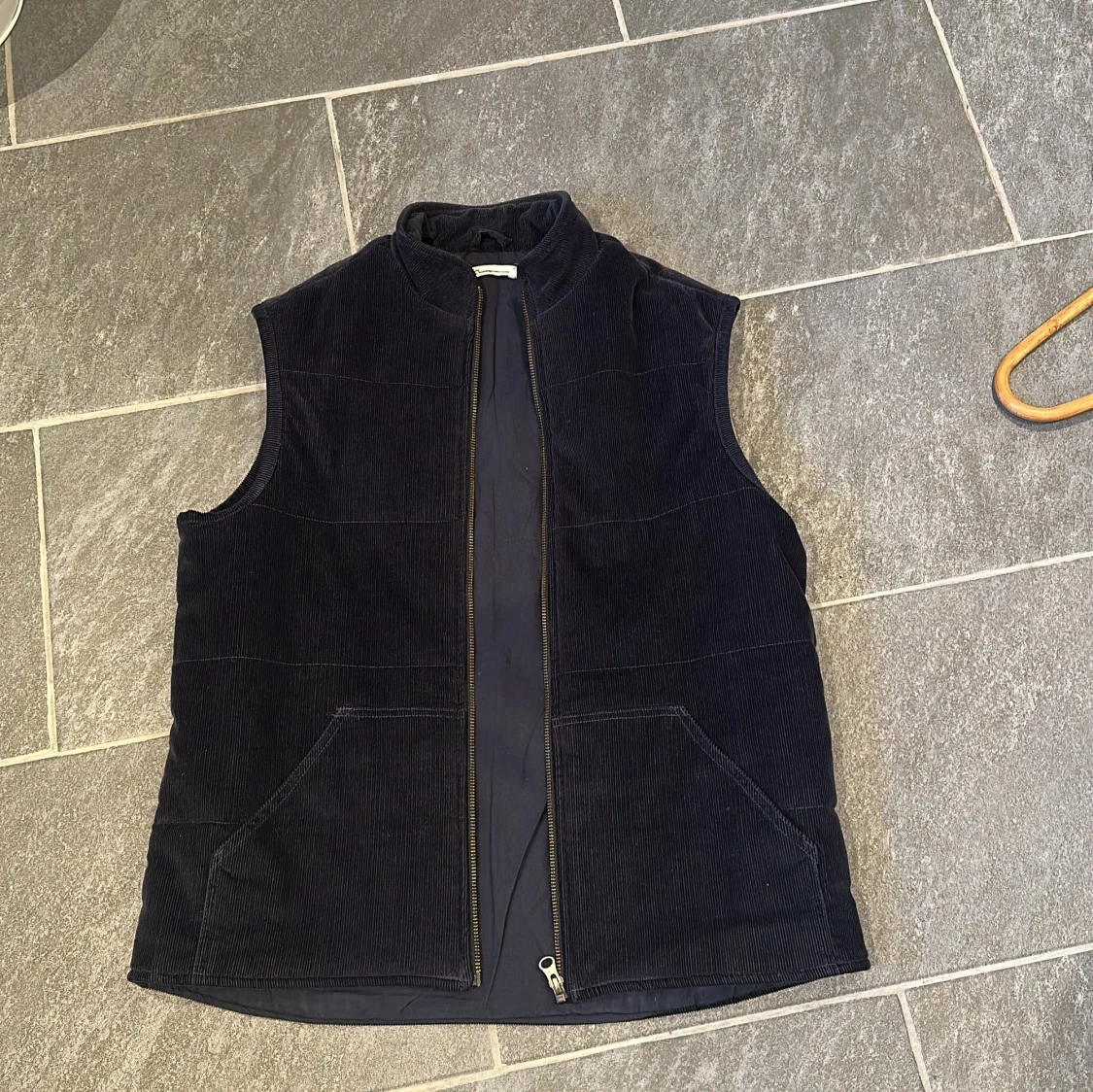 Snygg mörkblå vadderad väst från Knowledge Cotton Apparel i manchester. Västen har hög krage, två stora fickor framtill och dragkedja hela vägen. Perfekt för en stilren look. Vid frågor är det bara att skriva🙌🏼🥂